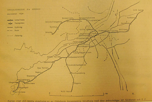 Även om man för Göteborgs vidkommande ännu icke kan räkna med någon lokalbana på åtskilliga år, torde dock storleken av den öst-västliga trafiken eller kanske rättare den nordost-sydvästliga motivera att man redan nu undersöker möjligheterna för anläggning av en östvästlig lokal bana i Göteborg, till vilken då befintliga och tilltänkta förortsbanor skola anslutas, menar spårvägsstyrelsen.