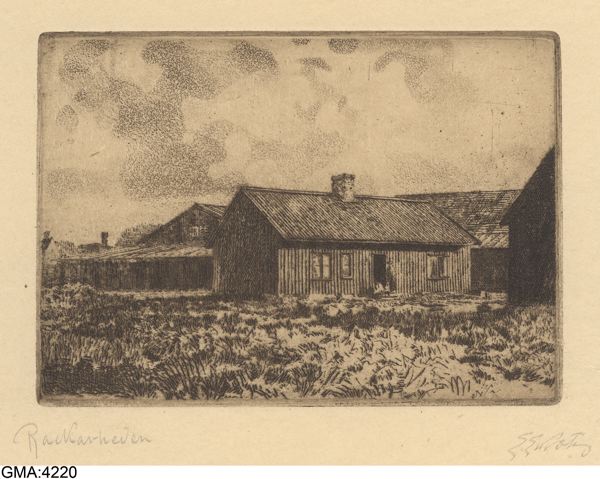 Bilden i sidhuvudet är hämtad ur Carlotta:”Rackareheden.” Etsning. Anm. Troligen bebyggelse vid Färgaregatan.