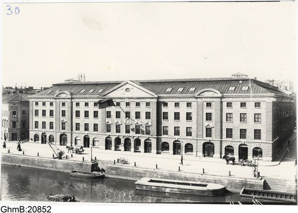 Af den nu föreliggande af Musei ombudsman omsorgsfullt utarbetade och vackert tryckta festskriften vilja vi här påpeka endast några spridda detaljer. Så vidt af gamla ännu befintliga handlingar framgår, uppfördes fasadbyggnaden åt Norra Hamngatan och östra flygeln långs Tyggårdsgatan 1750, vestra flygeln längs Smedjegatan däremot först tio år senare. Byggnaden kostade i sin helhet 150,000 rdr specie. För uppförandet af hufvudbyggnaden åtgingo omkring 937,000 och för vestra flygeln omkring 883,000 murtegel. Några detaljerade räkenskaper rörande byggnadens uppförande finnas icke i behåll, ty Ostindiska kompaniet gick i sin hemlighetsfullhet angående affärerna så långt, att det hvart tredje år förstörde alla sina böcker och räkenskaper, sedan de granskats och godkänts af därtill utsedda revisorer.
