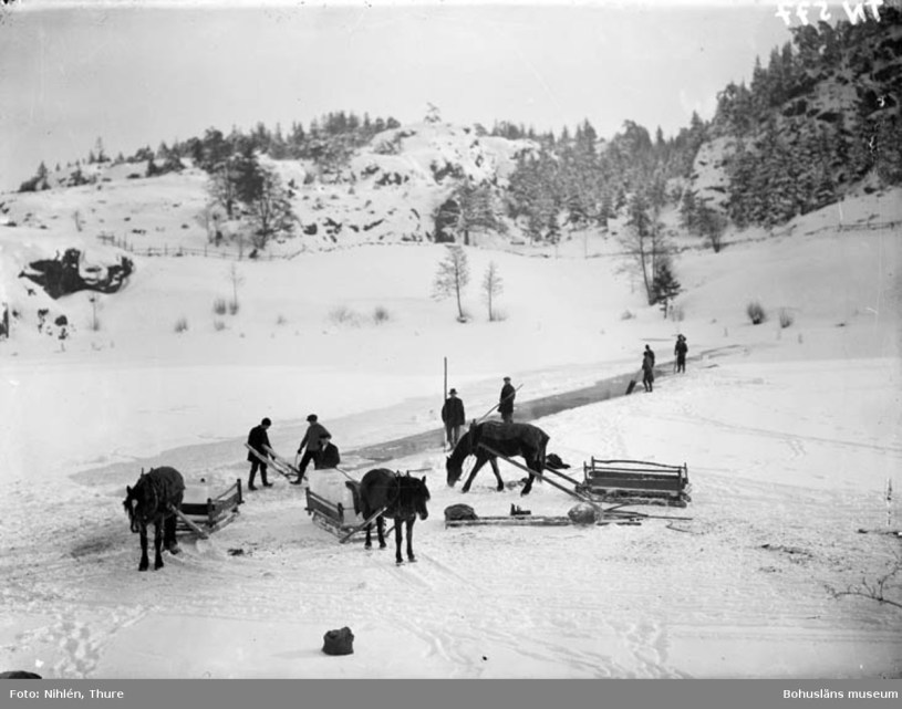 Bilden i sidhuvudet är hämtad från Digitalt Museum: Isupptagning, sågning av isblock på fruset vatten och borttransport av blocken med häst och släde.