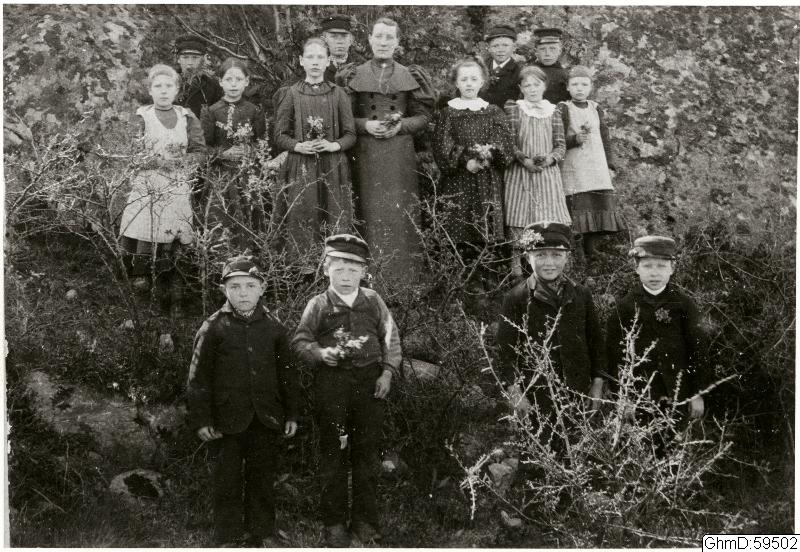 Bilden i sidhuvudet är hämtad från Göteborgs stadsmuseum, Carlotta: Foto från omkring år 1897, med skolbarn och lärarinna Anna Axelsson på Köpstadsö. Klassen ute i det fria. Barnen och Anna Axelsson har blommor i hnänderna, några av pojkarna har blommor i mössorna. Ida Gustafsson står längst fram, tvåa från höger, i rutig blus och randigt förkläde.