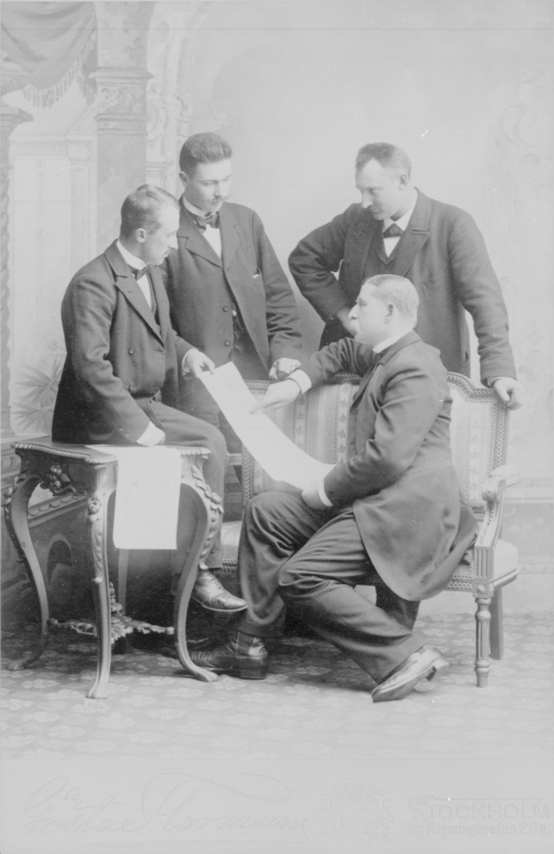 Bilden i sidhuvudet är hämtad från Digitalt museum: I 1897 års expedition tillkom en fjärde reservdeltagare till följd av Nils Ekholms beslut att hoppa av. Fr v. ses reserven Vilhelm Swedenborg, Nils Strindberg, Knut Fraenkel och S.A. Andrée.