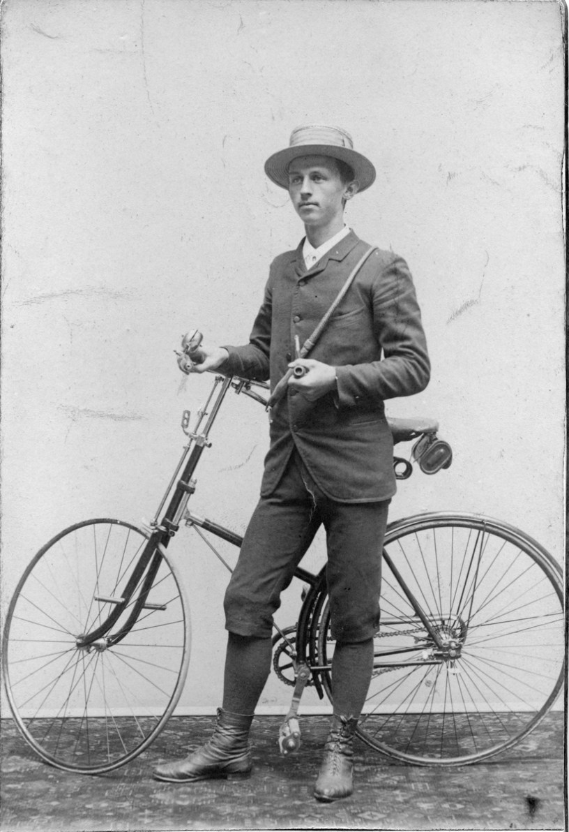 Bilden i sidhuvudet är hämtad från Digitalt museum: En sydsvensk cyklist eller ”hjul-ryttare” 1889 i Malmö. Sedermera veterinär Oscar Sten.