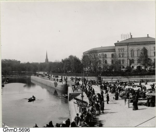 ”Grönsakstorget företer nu om dagarne en vårlig anblick, i det åtskilliga af vårena alster där dyka upp. Björkens späda löf säljas af gummor och barn, och bland blommorna utbjudas äfven en och annan af vårens förstlingar.” (Ur: Göteborgs Aftonblad 13 april 1897)