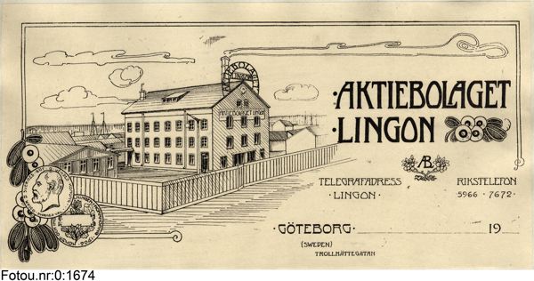 Bilden i sidhuvudet är hämtad från Göteborgs stadsmuseum, Carlotta: Vignett på brevpapper för Aktiebolaget Lingon, Trollhättegatan, Hultmansholme.
