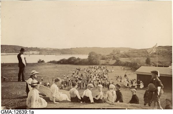 Bilden i sidhuvudet är hämtad från Göteborgs stadsmuseum, Carlotta: Fågelro. T.v. de fyra ledarna av utflykterna, t.h. lekskjulet. Längst bort Nya Varvet.