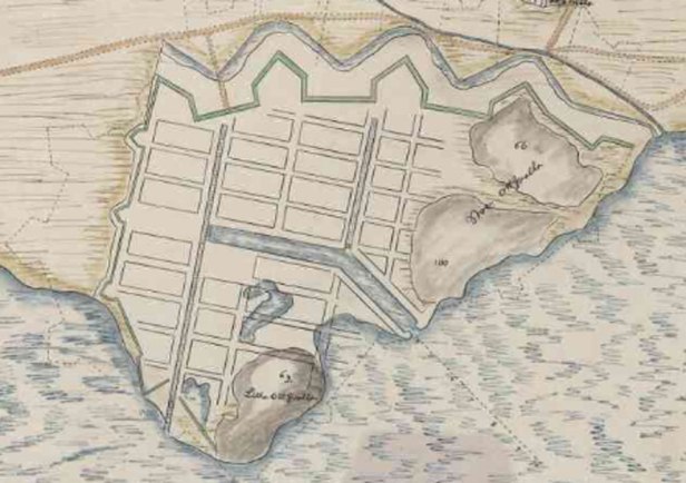 Arbetet med den nya staden Göteborg inleddes redan våren 1619 efter att Älvsborgs andra lösen var betald och en första stadsplan hade upprättats. Dokumentationen kring de första arbetsinsatserna är begränsad och den karta som bör ha funnits 1619 har gått förlorad, men det finns ledtrådar i andra historiska handlingar. I ett arbete från 1928 påpekade Albert Lilienberg betydelsen av en odaterad perspektivskiss över Göteborg i Krigsarkivets samlingar. Skissen visar det som skulle bli centrala Göteborg med en kyrkobyggnad på Kvarnbergets topp samt en större kanal från ungefär nuvarande Stora till Lilla Bommen. På toppen av det vi idag kallar Stora Otterhällan fanns ett slott inritat. Någon stadsbebyggelse visar inte skissen, endast en ring av vallar och bastioner kring ett blivande stadsområde. (Lilienberg s. 148-156)