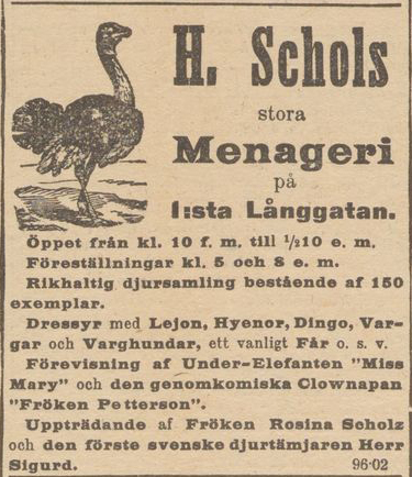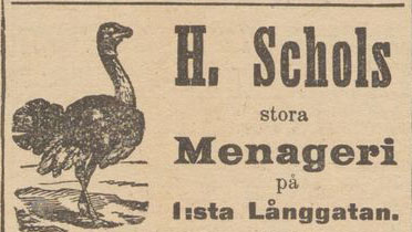 Hvar och en är belåten med sitt besök i Scholtzska menageriet vid Första Långgatan.” (Ur: Göteborgs Aftonblad 19 november 1897) Bilden i sidhuvudet och nedan är hämtad ur samma dags tidning.