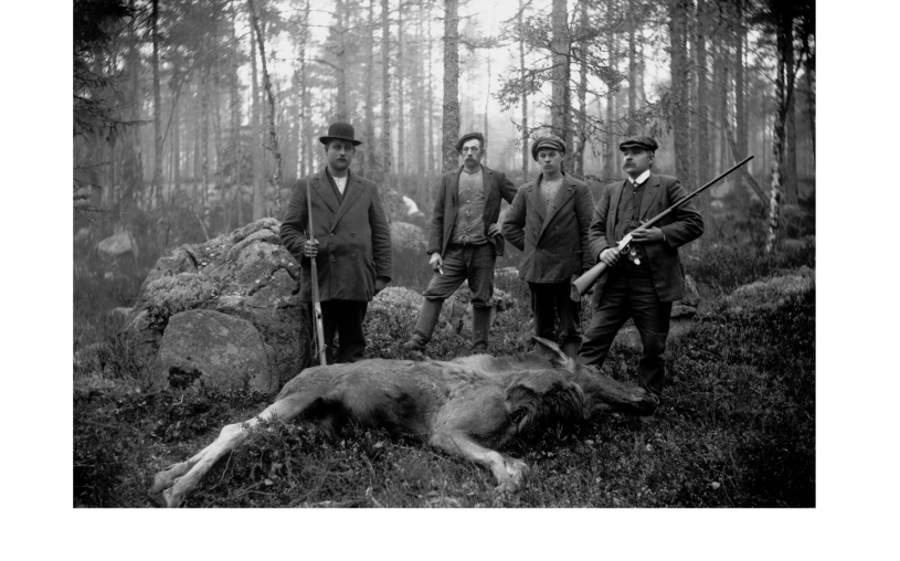 Bilden i sidhuvudet är hämtad från Digitalt museum: Fyra jägare med gevär och en älg. Från vänster: Nr 1 Arvid Stenholm, född 1878, Nr 4 Gustaf Ferdinand Hallberg, född 1860.