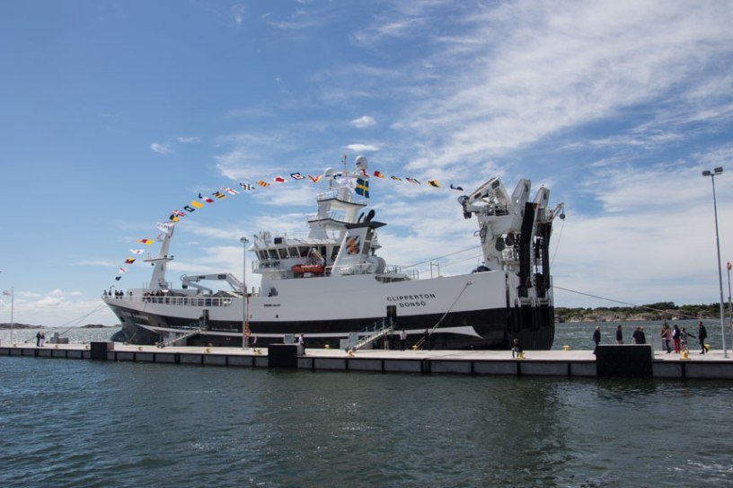 Idag blir det lite samtidshistoria med några bilder från visningen av det nya fiskefartyget GG 229 Clipperton. Det var en stor tillställning den 21 juni 2018 då det nya fartyget visades upp i Donsö djuphamn, som även den är en nyhet vilken invigdes den 18 maj. Fartyget är stort, det största just nu under svensk flagg, dock inte det största någonsin eller det största ägt av svenska ägare.