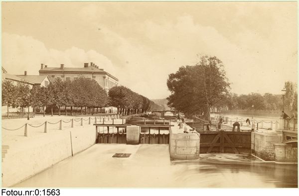 ”Jemte det Herr Landshöfdingen och Magistraten funnit nödigt stadga och förordna, att den som inlägger i stadens sluss och qvarn på det sätt att farkost eller timmerflotte stöter mot tillsluten slussport så hårdt att märke efter påstötningen synes – söker införa farkost till det djupgående, att densamma med lätthet icke flyter öfver slusströskeln – till farkost eller flottes afsättning i slussen eller annorstädes der begagnar stång, eller bärling med jernbeslag, eller ock vid fart genom slussen och qvarnen annorlunda skadar byggnaden, eller någon dess tillhörighet derföre skall, utom ersättning för skadan böta från och med 3 Rdr 16 sk. Till 10 Rdr Bko, har Magistraten af förekomne anledning ansett lämpligt föreskrifva: att för slussning genom portarne å sön- eller helgedag, och i öfrigt efter kl. 11 om aftonen och före kl 5 om morgonen, särskild afgift, utöfver hvad genom Taxan blifvit bestämdt, bör erläggas med 8 sk. Berörde sedelslag för hvarje farkost: att sådan för att fortskaffas genom slussen efter det om aftonen blifvit mörkt, och förr än full dager inträdt skall innehafva två välförsedde och lysande lyktor, deraf en i fören, och den andra akterut: samt att flottning af bjelkar, timmer och annat virke må genom slussen verkställas endast vid dagsljuset.