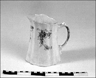Bilden i sidhuvudet är hämtad från Göteborgs stadsmuseum, Carlotta: Vit vågformig porslinskanna med lila syréner på 3 ställen runt om. En porslinsbit ur längst fram på kannan. Lilafärgad stämpel i botten ”Aktiebolaget Göteborgs Porslinsfabrik Dec 16” Hänkel är också vågformig.
