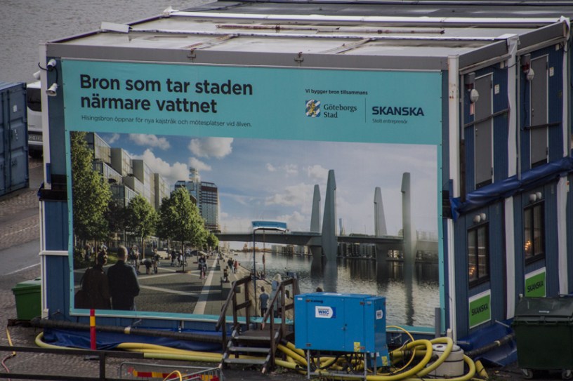 Hisingsbron som skall ersätta Götaälvbron, enligt planen 2021, växer sakta fram på båda sidor av älven och mitt i där fundamenten till bropelarna nu börjar bli synliga. Under lördagen den 8 december 2018 var det dags för en ny vandring i området för att insamla mer bildmaterial.