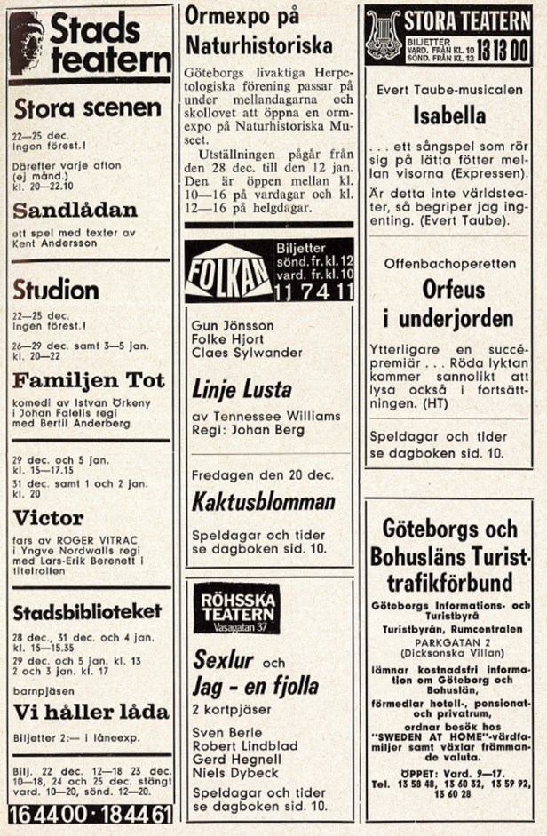 Inför det nya året startas här på Göteborgs historia en ny serie med material ur tidningen ”Göteborg denna vecka”, en tidning som var officiellt organ för Göteborgs och Bohusläns turisttrafikförbund 1931-1977. Varje söndag kommer det ett utdrag ur tidningen som berättar om vad som var på gång i staden för femtio år sedan. Vilka filmer såg göteborgarna 1969? Vilka föreställningar gavs på stadens teatrar? Vilka utställningar var aktuella? Men tidningen innehöll även artiklar, denna första vecka skall här återges planerna inför stadens stora 350 års firande 1971, något som vi säkert får tillfälle att återkomma till även i andra artiklar här på Göteborgs historia under de kommande åren.