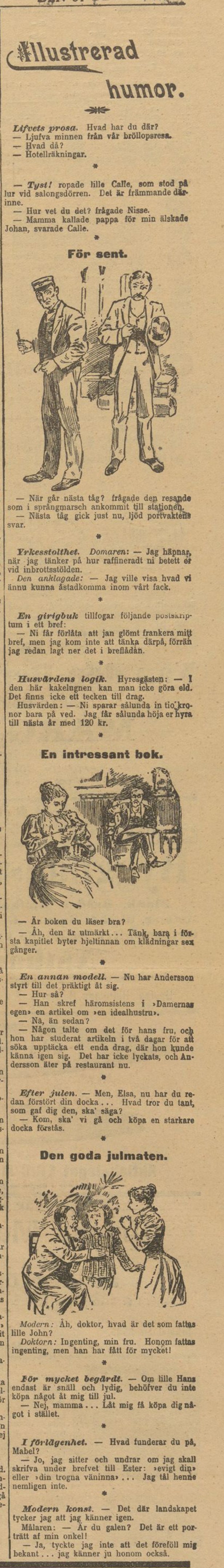 Årets sista berättelse från 1898 blir lite ”illustrerad humor”, från Göteborgs Aftonblad den 31 december. Gott slut på det gamla året önskas alla ”nutida” läsare!