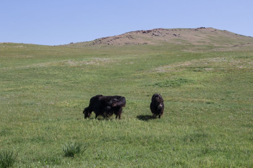 Bilden i sidhuvudet visar två grymtoxar (jak) i Mongoliet 2016. Foto: Per Hallén.