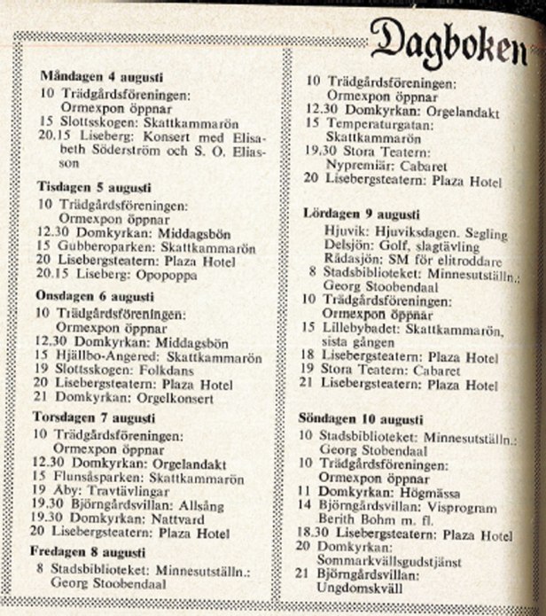 Källa: Göteborg denna vecka: med Göteborgskarta, Göteborg denna vecka, Göteborg, 1931-1977. Tidningen finns i Göteborgs Hembygdsförbunds arkiv.