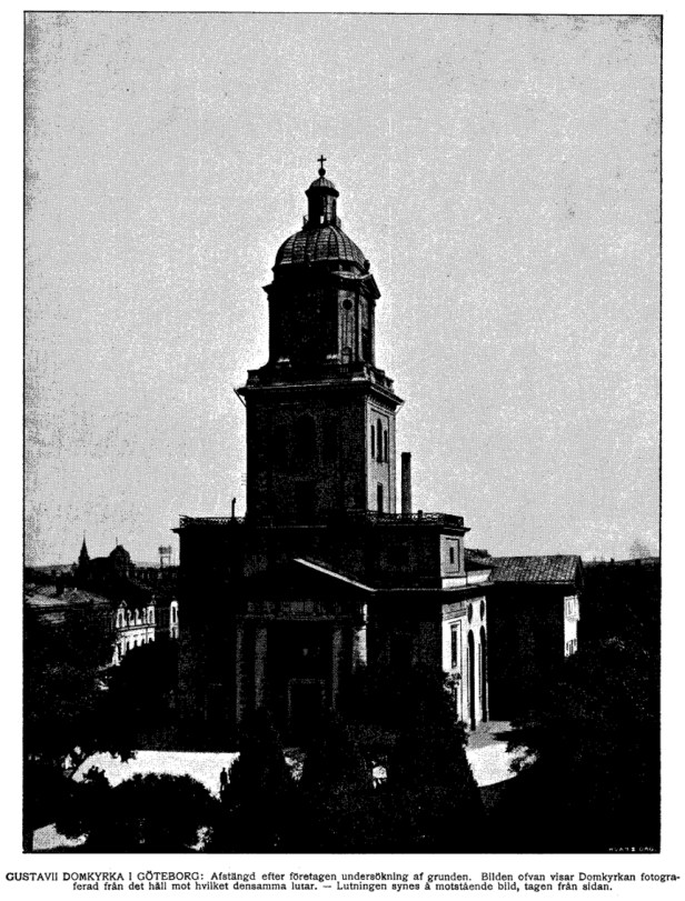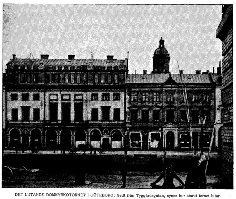 ”Den nämnd af sakkunnige som haft i uppdrag att undersöka de förhållanden som stå i samband med en sedan någon tid iakttagen lutning å Domkyrkotornet, har nyligen afgifvit sitt betänkande. Af detsamma framgår att faran för ras ingalunda är utesluten.