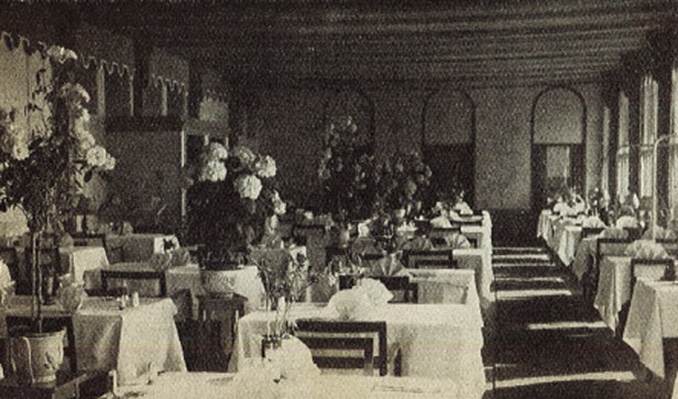Här ute är det även mycket väl sörjt för den timliga näringen genom en förstklassig restaurang. Elegant och trevligt inredd har denna restaurang blivit en synnerligen populär utflyktsort, även bekant för sina angenäma dansaftnar. Och till sist får man icke glömma att omtala den härliga utsikten, som man har från restaurangen över älvmynningens blåa vatten, där i 1oo-tal fartyg och båtar glida fram över de brusande böljorna. Sällan får man se en skönare syn, än när man i aftonskymningen blickar ut över älven och den gamla fästningen och den rödskimrande solen sakta dyker ned bakom synranden.