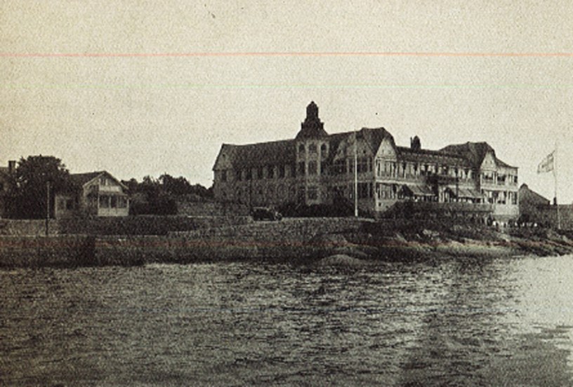 Här ute är det även mycket väl sörjt för den timliga näringen genom en förstklassig restaurang. Elegant och trevligt inredd har denna restaurang blivit en synnerligen populär utflyktsort, även bekant för sina angenäma dansaftnar. Och till sist får man icke glömma att omtala den härliga utsikten, som man har från restaurangen över älvmynningens blåa vatten, där i 1oo-tal fartyg och båtar glida fram över de brusande böljorna. Sällan får man se en skönare syn, än när man i aftonskymningen blickar ut över älven och den gamla fästningen och den rödskimrande solen sakta dyker ned bakom synranden.