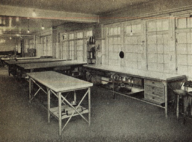 Vid ett besök i ”Bräutigams” arbetslokaler får man ytterligare en uppfattning om konditoriets standard. Lokalerna äro ljusa och luftiga. Renlighet och hygien äro minutiöst genomförda krav. 21 större och mindre lokaler om icke mindre än tillsammans 1.750 kvadratmeter ge arbetsplats åt ett 80-tal anställda. Vid jul- och påsktid ökar antalet till över 100-talet. De maskinella anordningarna äro rationella och moderna och på bakavdelningen tilldrager sig en stor, modern bakugn berättigad uppmärksamhet.