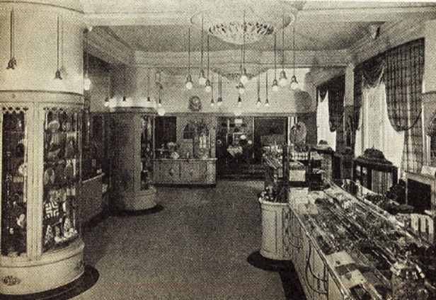 Företagets försäljningslokaler, vilka äro belägna i första våningen, ha en synnerligen tidsenlig och elegant inredning och varorna äro smakfullt ordnade i moderna glasmontrar. De stora, ljusa och förnämligt inredda serveringslokalerna äro belägna en trappa upp. Här finnes såväl rökrum för herrarna som trivsamma lokaler för damerna.