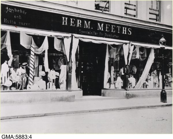 Bilden i sidhuvudet är hämtad från Göteborgs stadsmuseum, Carlotta: A.B. Herman Meeths: Exteriör av affären i Göteborg, år 1904.