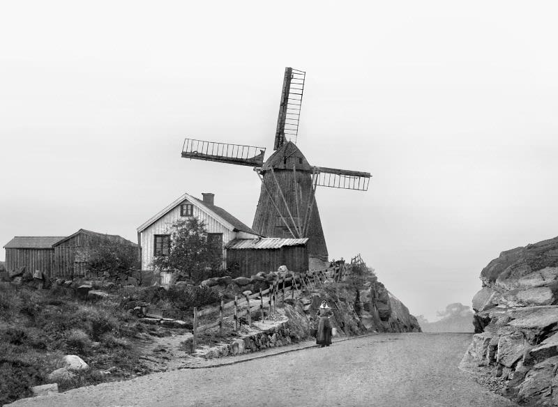 Bilden i sidhuvudet är hämtad från Göteborgs stadsmuseum, Carlotta: Kvinna på väg till brunnen i hörnet mellan stengärdesgården och staketet. Platsen är Kvarnberget även kallad ”Roosens Kulle” i dåvarande Lundby socken. Gatan hette vid den tiden för fotot Regulusgatan, i dag Herkulesgatan. Foto ca år 1900.