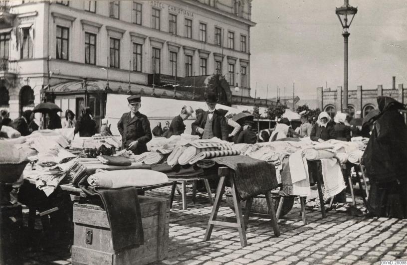 Bilden i sidhuvudet är hämtad från Göteborgs stadsmuseum, Carlotta: Linnemarknad på Drottningtorget framför hotell Eggers år 1907.