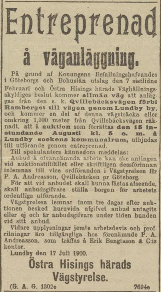 Intresserad av att bygga en väg på Hisingen? Då är det nog dessvärre lite sent att lämna in ett anbud för denna vägsträcka till Östra Hisings Härads Vägstyrelse.