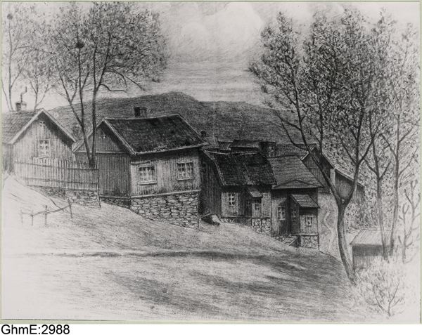 Bilden i sidhuvudet är hämtad från Göteborgs stadsmuseum, Carlotta: astell, sign. n.t.v. ”Nils Rosberg” samt ”Burgårdsbergen” (anm. Förmodligen avses med det sistnämnda Buråsbergen emedan en situation vid det förstnämnda, som den bilden visar, knappast kan vara tänkbar. I händelse den här angivna möjligheten är riktig torde man gissningsvis våga anta, att man ser ett parti av antingen Trycksliden eller Buråsliden varvid kanske det förstnämnda alternativet är troligast.)