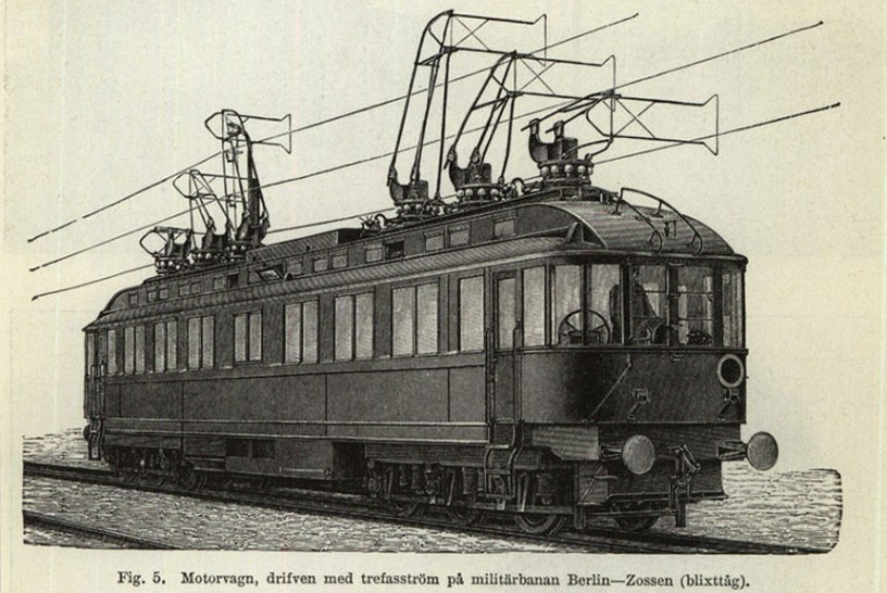 Bilden i sidhuvudet är hämtad ur Nordisk familjebok, Uggleupplagan: Blixttåg på militärlinien Berlin— Zossen.