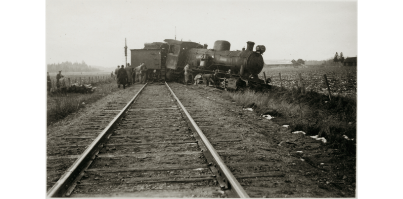 Bilden i sidhuvudet är hämtad från Digitalt museum: Urspårning på Köping – Uttersberg – Riddarhyttans Järnväg, KURJ.