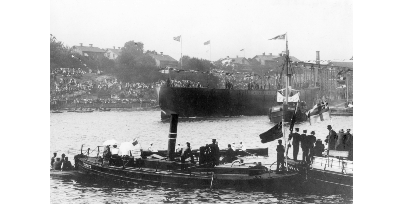 Bilden i sidhuvudet är hämtad från Digitalt museum: Från pansarskeppet DRISTIGHETENs sjösättning 28 april 1900. Bogserbåten ”Färdig” syns nära sjösättningen.