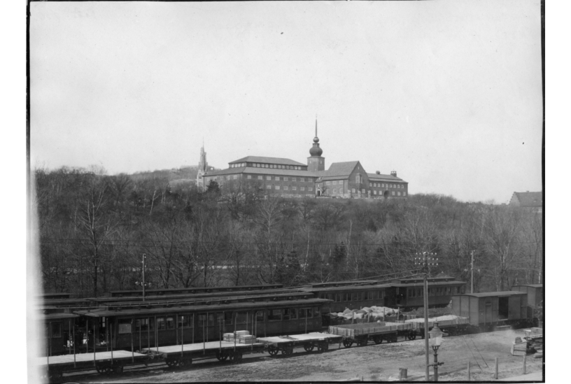 Bilden i sidhuvudet är hämtad från Digitalt museum: Naturhistoriska museet i Slottsskogen, sett från Annedalskyrkan. :: I förgrunden perrong med tåg och spår på Säröbanan.