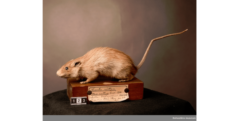 Bilden i sidhuvudet är hämtad från Digitalt museum: Text på etikett: Svarta råttan. Mus rattus. Linné 1758, adulter. Västergötland 1890-talet. Stoppad av Hilmer Skoog; pris 8 kr.