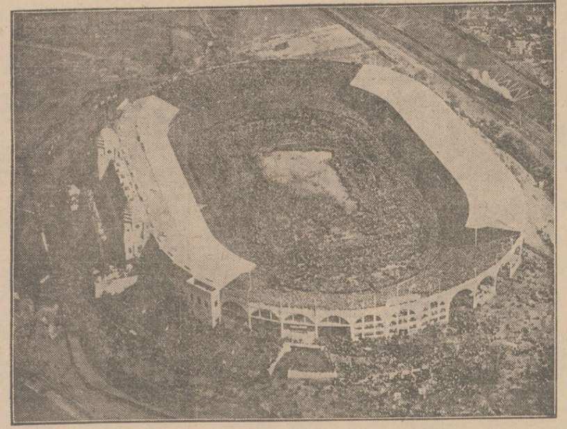 ”Göteborg har nyligen fått sitt nya stora idrottstempel invigt, varför det kan vara lämpligt att i detta sammanhang visa en bild av hur det såg ut i Wembley Stadion vid tiden för cupfinalens början mellan West Ham och Bolton. Fullt så mycket folk var det icke vid Slottsskogsvallens invigning, vilket väl i hög grad berodde på att kommunikationerna icke fungerade på ett tillfredsställande sätt. I London anlägger man icke en idrottsplats utan att tänka på, hur publiken lättast och i största möjliga antal skall kunna ta sig ut till platsen i fråga, när det blir något större evenement. Extratågen och de ordinarie rullade hela dagen i en oavbruten ström ut till Wembley och lassade under dagens lopp av ett par hundra tusen personer. Man kan ju i viss mån likna Wembley Stadion vid vår Slottsskogsvall, även om denna jämförelse i många fall kan förefalla absurd. T.ex. beträffande kommunikationerna. Men vi få väl hoppas, att vederbörande här hemma så småningom komma på bättre tankar och gör vad i deras förmåga står för att underlätta transporterna av det levande materialet ut till Vallen. Annars blir det nog svårt att få in de 973,000 kr., man här lagt ut.