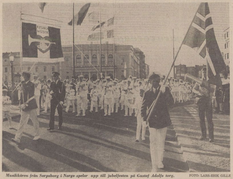 Och karneval var det verkligen! Kring de tre utescenerna vid Gustav Adolfs torg, Götaplatsen och Kungstorget, där Lasse Dahlquist tidigare på dagen dekorerad med stadens förtjänstmedalj, Hagge Geigert och Egon Kjerrman var konferencierer, böljade enorma människohav och pulsådern mellan de tre scenerna – Avenyn, som befriats från bilar och spårvagnar – såg ut som planen framför Ullevi före och efter en landskamp.
