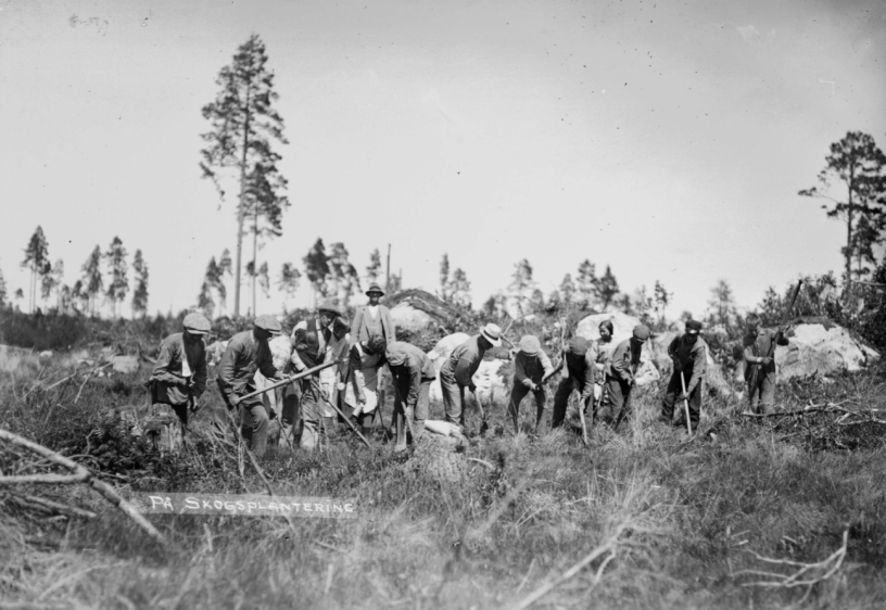 Bilden i sidhuvudet är hämtad från Digitalt museum: Skogvaktare Aronsons planteringslag på Kattmossen i Altuna i fullt arbete