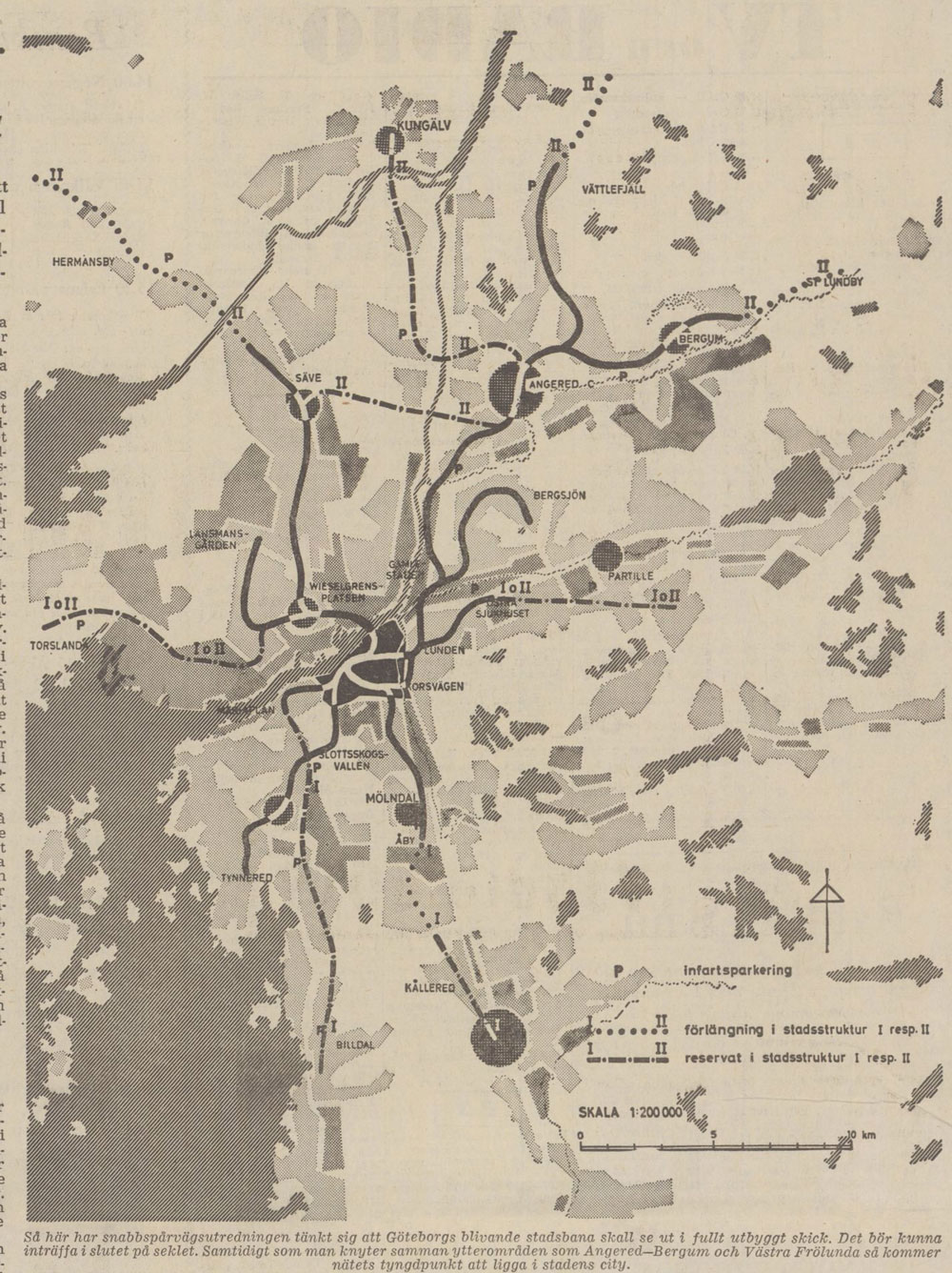 ”En modern automatiserad tunnelbana som får karaktär av vågräta hissar kommer att bli framtidens melodi för göteborgstrafiken. En sådan stadsbana, kostnadsberäknad till ca 1,4 miljarder kronor i dagens penningvärde, föreslås nämligen av den s.k. snabbspårvägsutredningen som på fredagen presenterade sitt material. Utredningen beordrades på hösten 1962 och den har letts av civilingenjör Erik Sylvén vid stadsbyggnadskontoret. Verk som biträtt utredningen är främst gatukontoret och spårvägen.