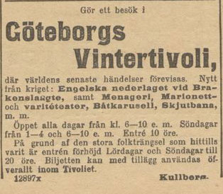 ”Icke så mycket för att skåda de ”schene raritäten”, som där erbjudas det nöjeslystna yngre Göteborg, var det som jag i lördags gjorde en titt dit upp till Lilla Otterhällan, utan fastmera för att få veta, om dylika marknadsnöjen ännu ha dragningskraft på en stor stadspublik.