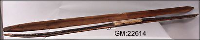 Bilden i sidhuvudet är hämtad från Göteborgs stadsmuseum, Carlotta: Skidor, ett par, med ornering i karvsnitt och ristning; målade i svart och guld; märkta S P 1897; fotstöden klädda med vitt skinn och försedda med hål för remmar.