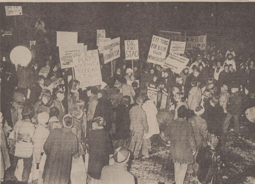 Så här förklarar Göteborgs Miljögrupp aktionen: – Garaget på Kungstorget byggs mot majoritetens vilja. I 1976 års val lovade socialdemokrater och vpk att stoppa P-huset och fick väljarnas förtroende. Trots valresultatet utnyttjar den avgående borgerliga majoriteten den korta tid – 6 veckor – som nu återstår av deras maktinnehav att driva igenom sitt P-hus.