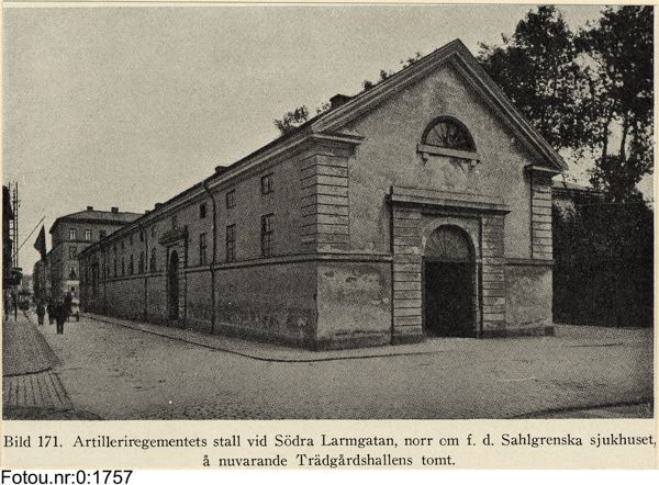 Bilden i sidhuvudet är hämtad från Göteborgs stadsmuseum, Carlotta: Artilleriregementets stall vid Södra Larmgatan, norr om Sahlgrenska sjukhuset, före detta.