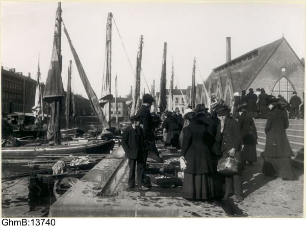 Å andra sidan måste, säger hälsovårdsnämnden, erkännas, att mycket kan och bör göras för en bättre behandling af den fisk, som här torgföres, och att gällande bestämmelser rörande försäljning af färsk fisk härstädes icke äro tillfredsställande. För närvarande gäller härom endast hälsovårdsstadgans omnämnda föreskrift, att födoämnen, som till följd af förskämning eller af annan orsak äro skadliga för hälsan eller otjänliga till människoföda, icke må i stad till salu hållas eller för sådant ändamål dit införas. Däremot innehålla de af k. befhde i länet fastställda, särskilda föreskrifter i afseende på den allmänna hälsovården i Göteborg icke bestämmelser rörande försäljning af färsk fisk. Hvad dessa särskilda föreskrifter innehålla beträffande försäljning af kött, torde emellertid i allmänhet lämpligen kunna tillämpas jämväl i fråga om försäljning af färsk fisk. Frågan om ändring af föreskrifterna i sådant syfte har under sislidet år varit på tal inom nämnden, men enär nämda föreskrifter inom kort måste undergå en väsentlig omarbetning vid införandet av härstädes af obligatorisk köttbesiktning och slaktning, ansåg nämnden sig icke då böra väcka förslag därom, och till stadsfullmäktige öfverlemna ett detaljeradt förslag om ändring af berörda föreskrifter. Vid det tillfälle, då nämnda fråga var på tal inom nämnden, beeslöt denna att såsom en provisorisk åtgärd genom anslag vid härvarande fiskförsäljningstorg varna allmänheten för att för tvättning af fisk använda kanalvatten, och torde ett uttryckligt förbud härför äfvenledes sedemera böra meddelas.” (Ur: Göteborgs Aftonblad 18 april 1902)