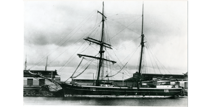 Bilden i sidhuvudet är hämtad från Digitalt museum: Ingen bild från sjösättningen har påträffats, men dagens notis illustreras med ett skonertskepp, Sjönk 1918 2 grader SO Enskär lastad med järnskrot. Befälhavare Carl August Lind.