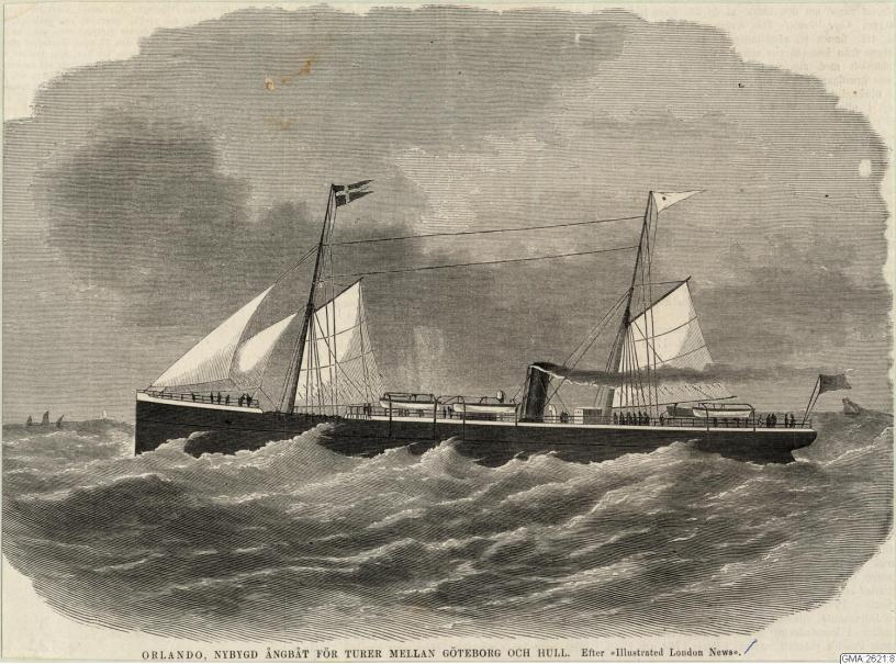 Bilden i sidhuvudet är hämtad från Göteborgs stadsmuseum, Carlotta: Orlando, nybygd ångbåt för turer mellan Göteborg och Hull. Efter ”Illustrated London News”.