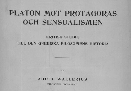 ”Den första doktorsdisputationen vid Göteborgs högskola ägde rum i går förmiddag, då fil. licentiaten Adolf Wallerius offentligen försvarade sin gradualafhandling, ”Platon mot Protagoras och sensualismen”.