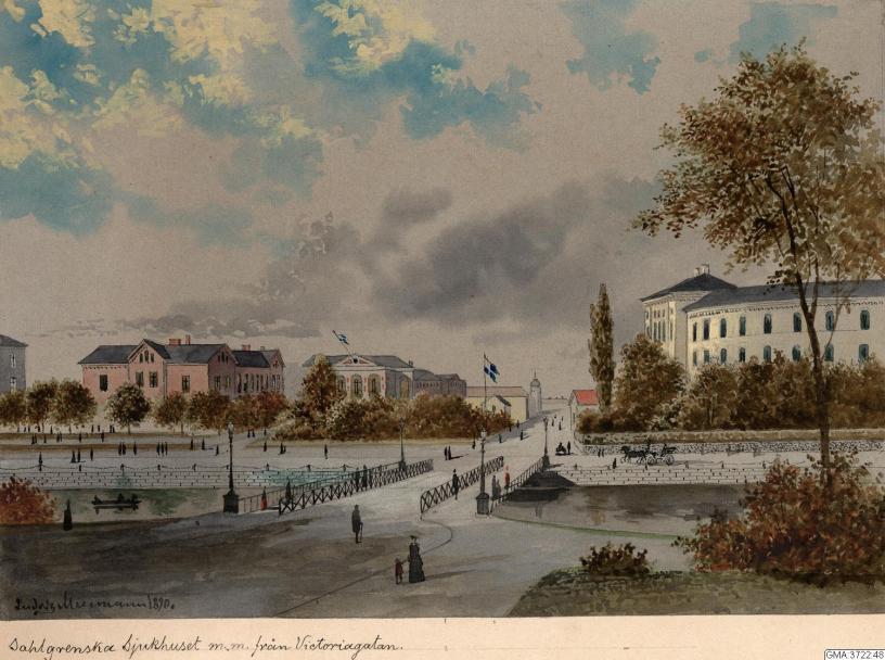 Bilden i sidhuvudet är hämtad från Göteborgs stadsmuseum, Carlotta: Sträckningsbild sedd från Viktoriagatan, mot Viktoriabron och Magasinsgatan. Till höger i bild Allmänna och Sahlgrenska sjukhuset. Till vänster Gymnastikhuset tillhörande Elementärläroverket och Handelsinstutet.
