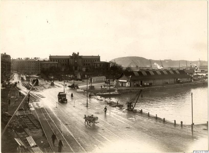 Fastighetsdirektören framhöll i ett utlåtande i frågan redan 1919, att trafiken på detta ställe väsentligt hindras av växelståg till och från hamnbanan. Förslaget föll 1919, och ehuru någon särskilt stor nedgång i kostnaderna för dess genomförande icke sedan dess inträffat, anser fastighetsdirektören, att man nu ej längre bör vänta med frågans lösning, särskilt med tanke på den väntade trafikökningen under utställningen. En underfart för enbart gångtrafik skulle draga en kostnad av 21,000 kr. Härav bör staden anslå 11,000 kr., medan man tror sig kunna beräkna, att S.J. och B.J. tillhopa skola bidraga med 10,000 kr. När 1919 års förslag framkom, erbjödo sig nämnda järnvägar att resp. 15,000 och 5,000 kr. bidraga till kostnaden. Även järnvägarna äro givetvis intresserad av att trafiken på platsen i fråga ordnas tillfredsställande.” (Ur: Göteborgs Handels- och Sjöfartstidning 3 januari 1923)